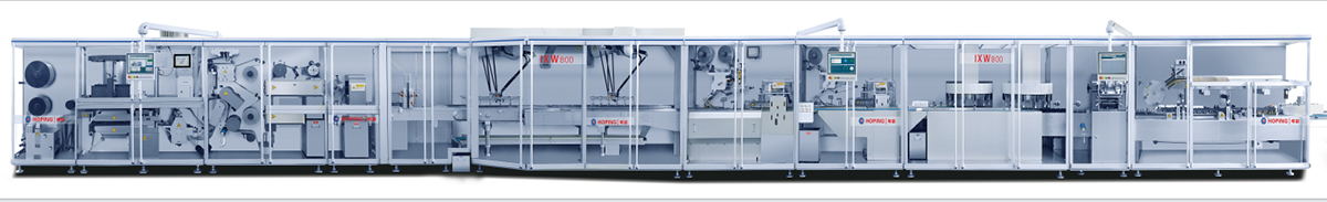 浙江希望機(jī)械堅(jiān)持走技術(shù)創(chuàng)新之道,攜帶我們的”新成員“IXW800智能全伺服高速雙軌泡罩枕包裝盒一體機(jī)亮相青島。