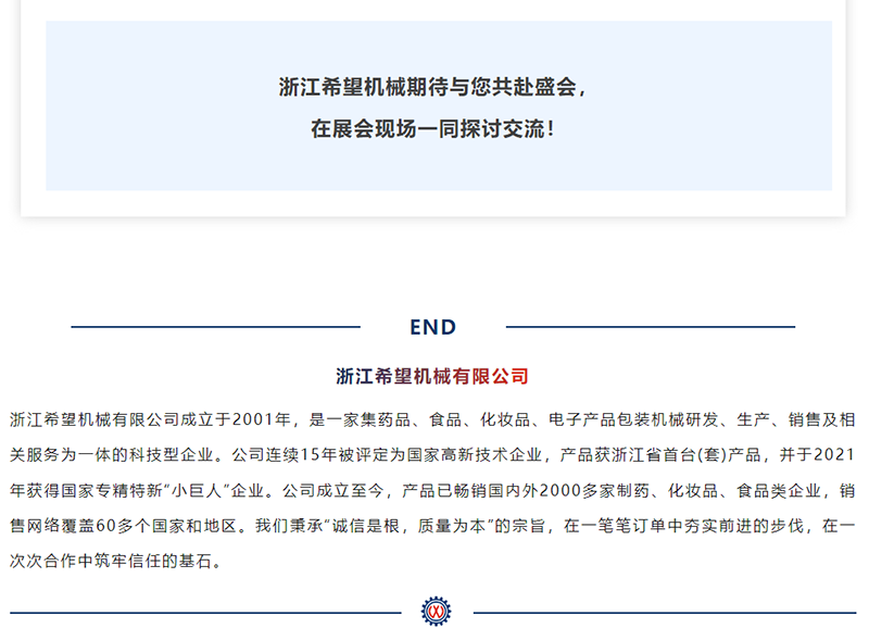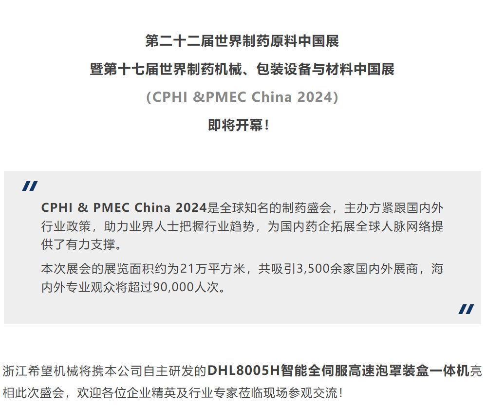 即將開(kāi)幕!浙江希望機(jī)械邀您共赴CPHI &PMEC China 2024!